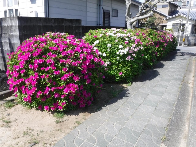 桜の季節もいつしか過ぎすっかり葉桜の季節となりましたが、鮮やかなヒラドツツジの花が咲き始めています。ヒラドツツジは、手間をかけなくてもよく育ちたくさんの美しい花をつけてくれることから、公園や生垣、遊歩道や道路沿いでもよく見かけます。ヒラドツツジの花は、若葉が出るよりも先に花が咲き、白、桃、赤、赤紫などの花を咲かせ、大きいものでは10cmを越えます。また、鮮やかな色の花がたくさん咲くので満開のときは素晴らしい景観をつくりだします。