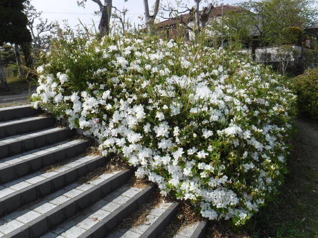桜の季節もいつしか過ぎすっかり葉桜の季節となりましたが、鮮やかなヒラドツツジの花が咲き始めています。ヒラドツツジは、手間をかけなくてもよく育ちたくさんの美しい花をつけてくれることから、公園や生垣、遊歩道や道路沿いでもよく見かけます。ヒラドツツジの花は、若葉が出るよりも先に花が咲き、白、桃、赤、赤紫などの花を咲かせ、大きいものでは10cmを越えます。また、鮮やかな色の花がたくさん咲くので満開のときは素晴らしい景観をつくりだします。