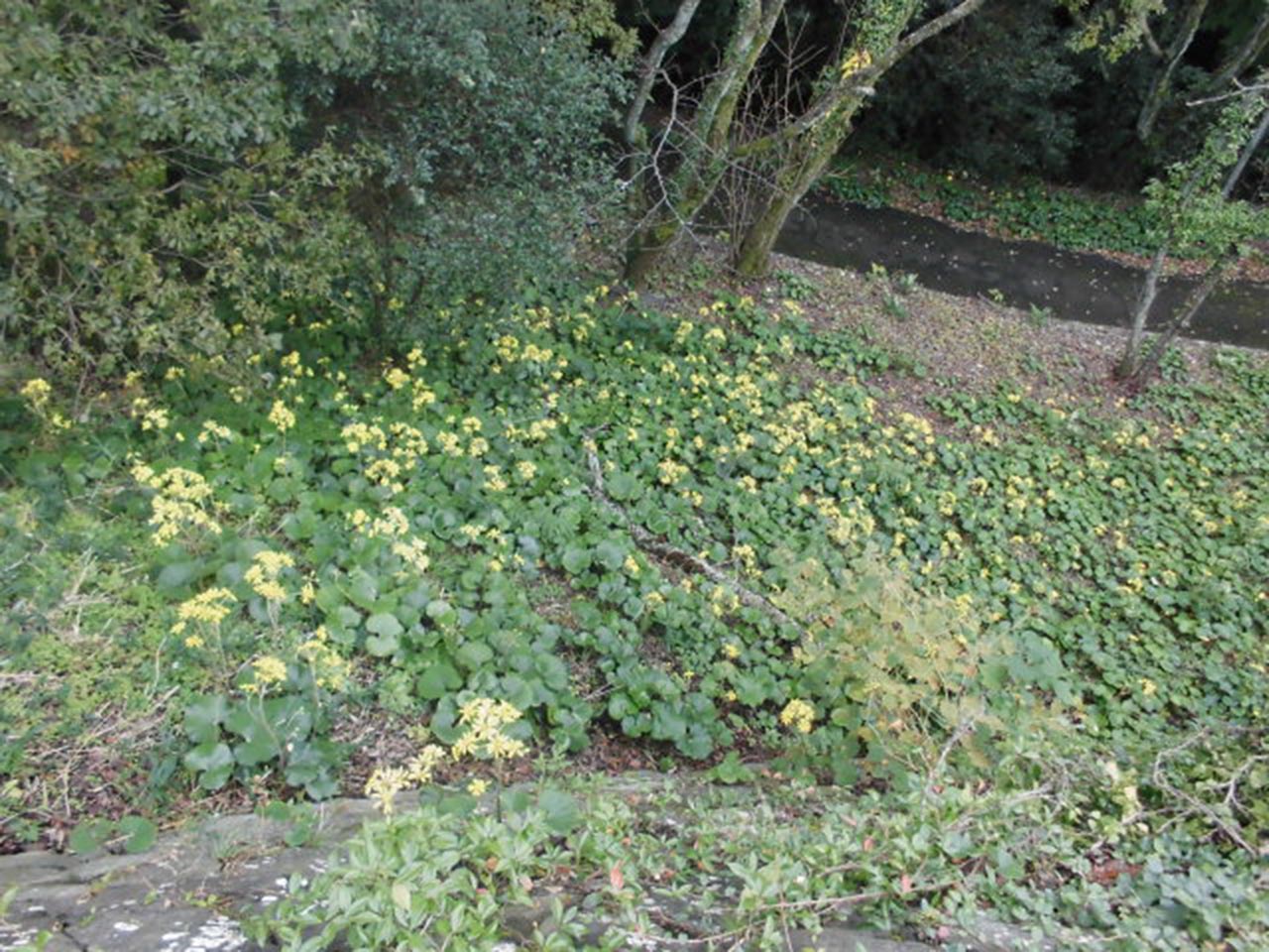 現在、徳島市の眉山公園の遊歩道沿いに高さ50センチほどの、ツワブキの花が見頃となっています。