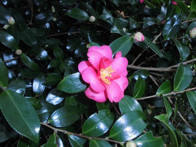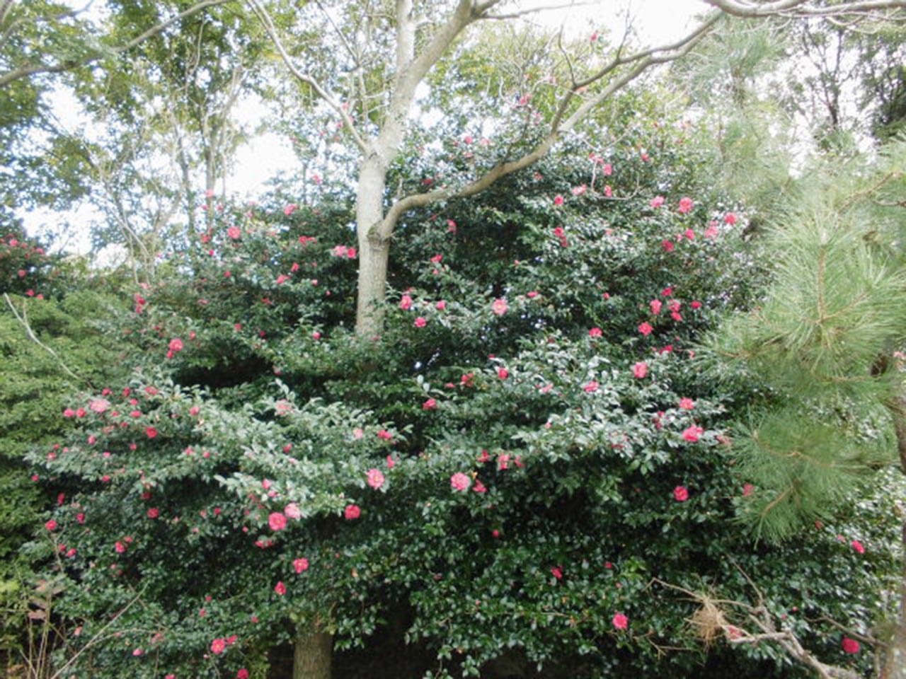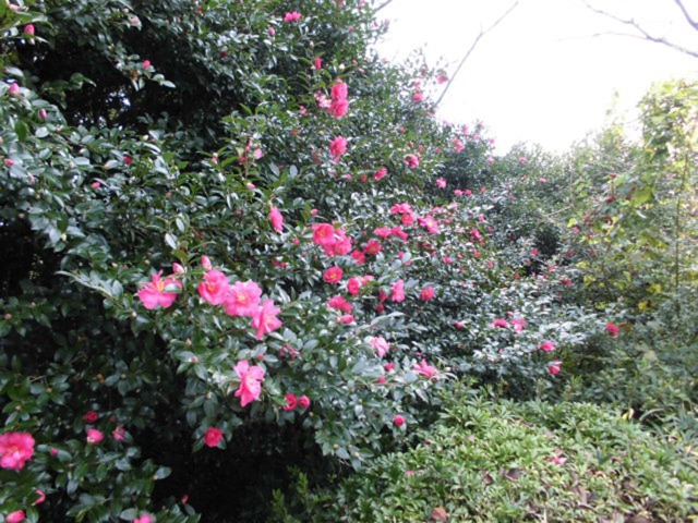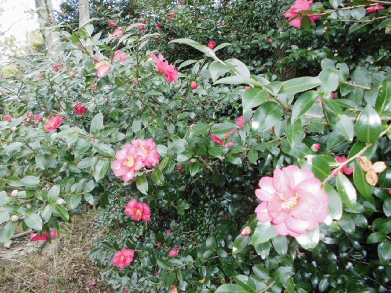 初冬のこの季節多くの花が枯れてしまうなかで、サザンカが花を咲かせ景色を彩っています。