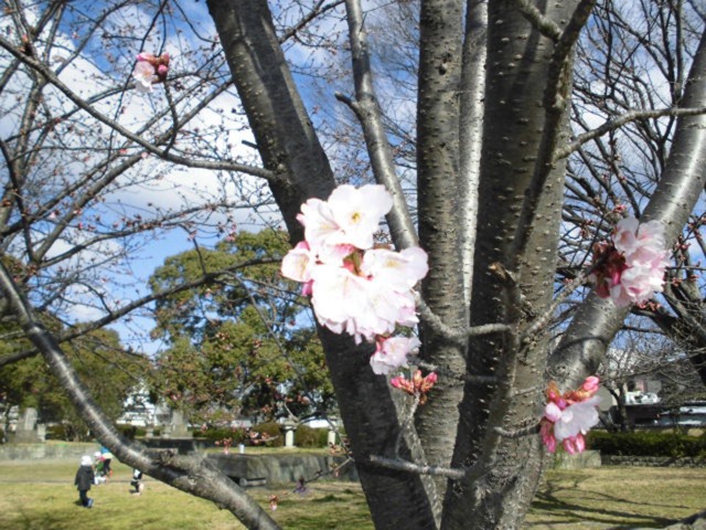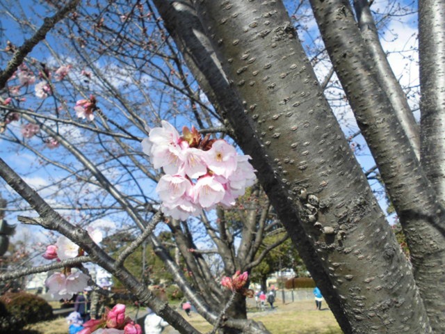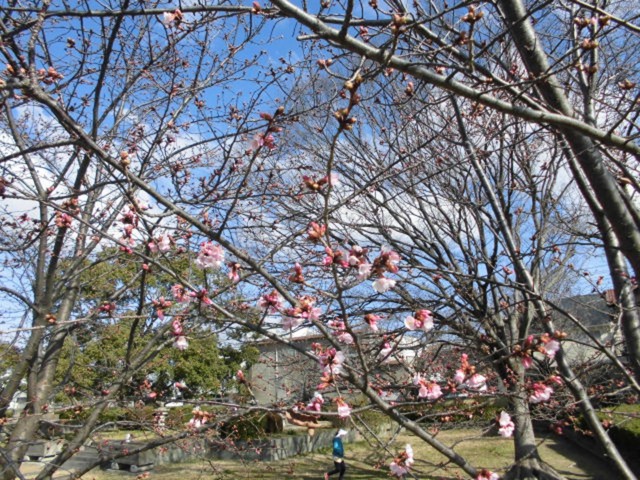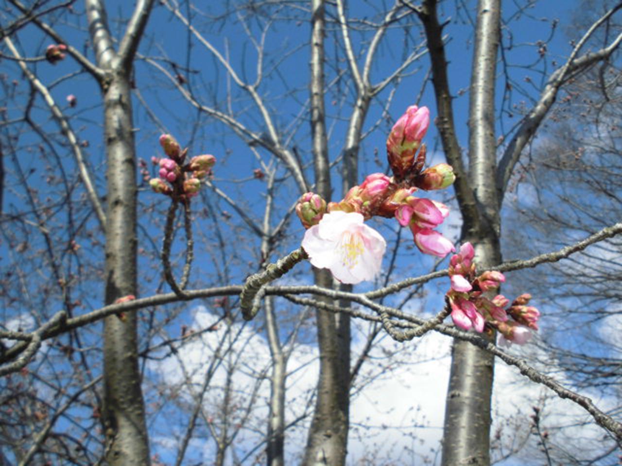まだまだ寒い日が続いておりますが、ハチスカザクラが一部咲き始めています。
