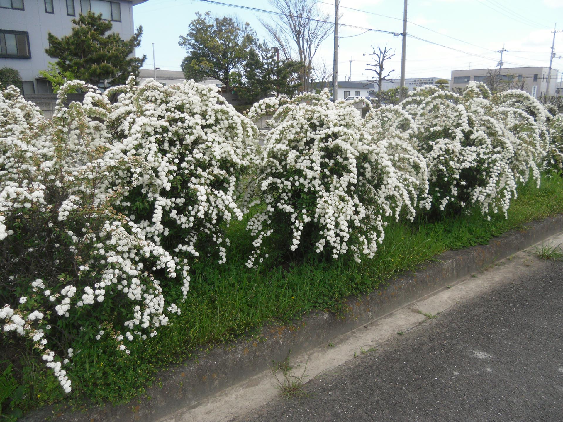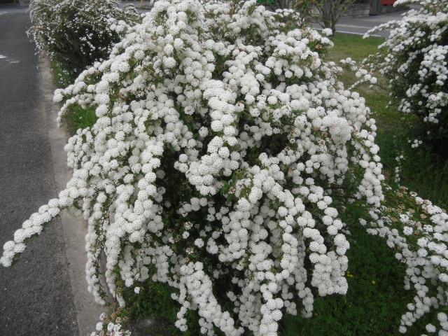 あんなに楽しませてくれた桜もすっかり散ってしまいましたが、小さな花がひとかたまりとなって、手まりのようなコデマリが花を咲かせています。コデマリの花は、細い枝や葉が見えなくなるほど白い多数の花を咲かせ、枝が垂れる姿が特徴です。