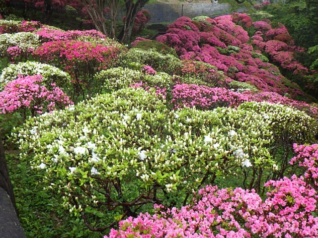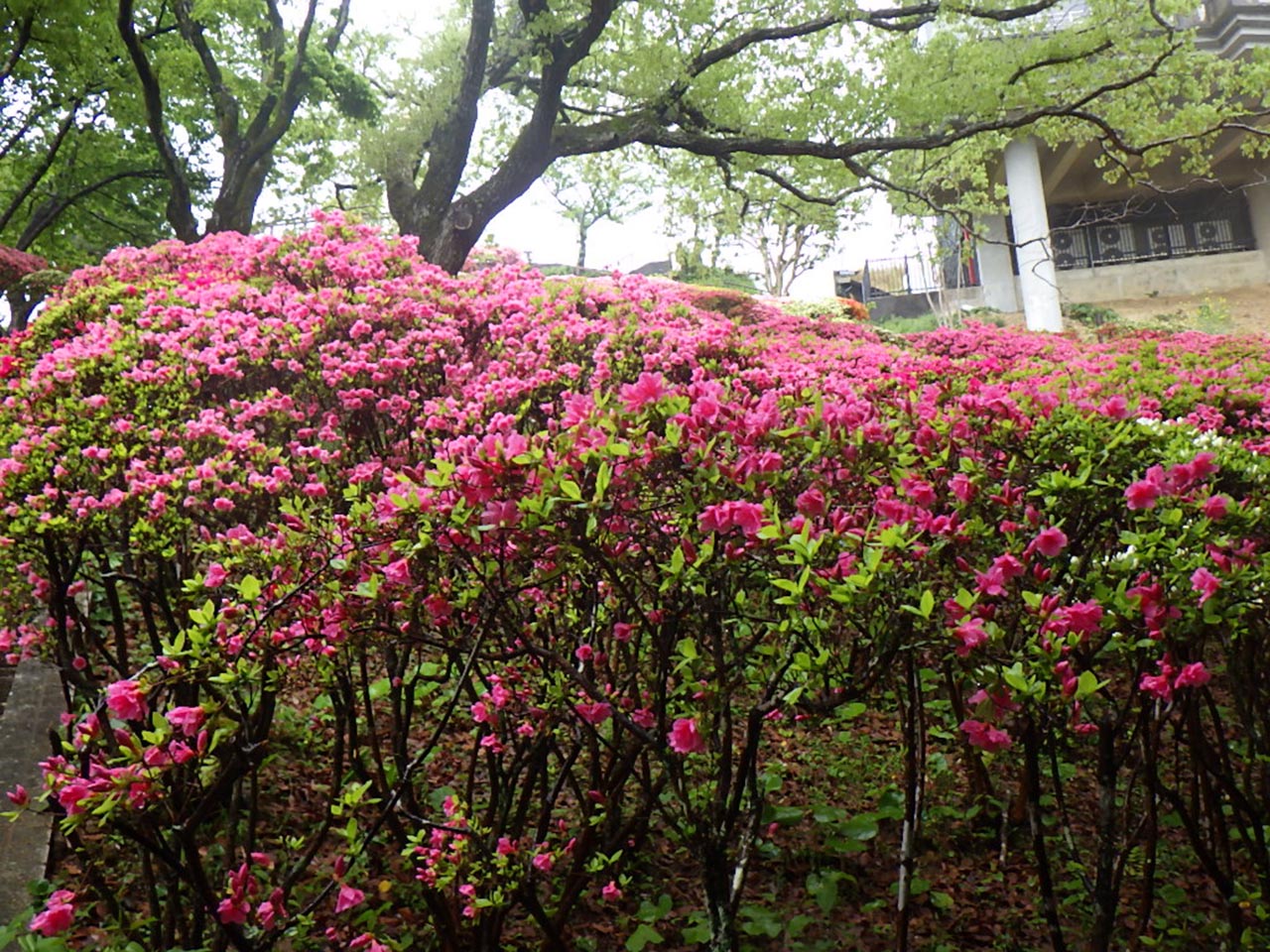 道端にタンポポやツツジの花がいっせいに咲き始め、クルメツツジの花も咲き始めています。クルメツツジは、キリシマツツジとサタツツジをもとに、江戸末期に久留米で改良された品種で、日本の庭には欠かせない花のひとつになっています。クルメツツジの花は、4月〜5月にかけて株を覆うように咲くので満開の時は、春の青空と美しいコントラストを生み出してくれるので本当に素晴らしいものです。