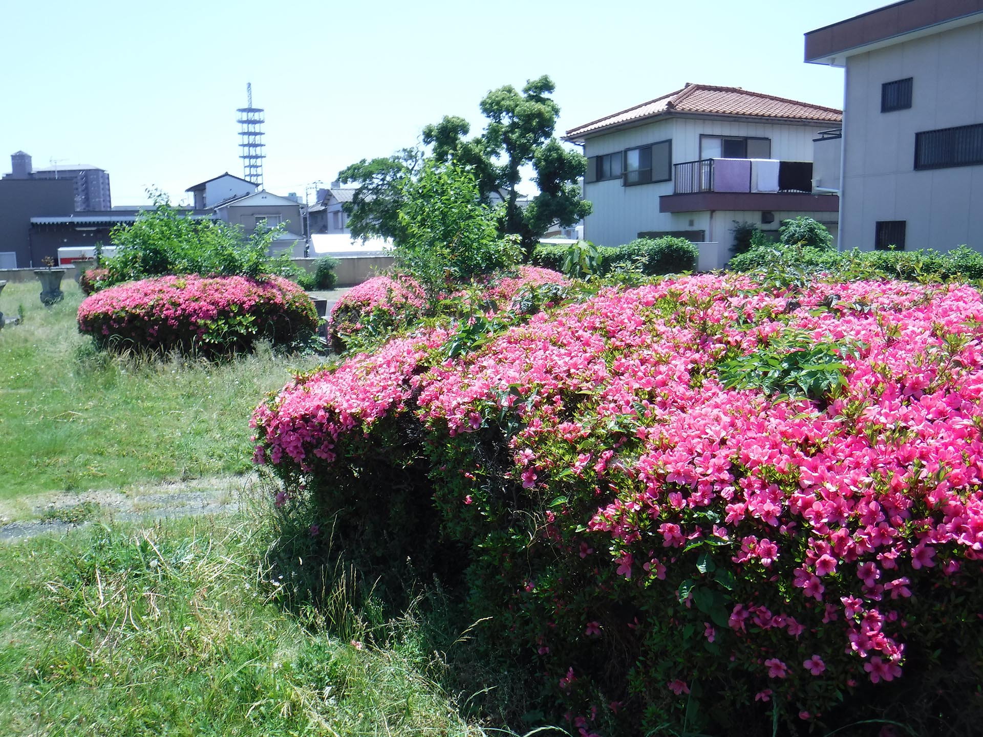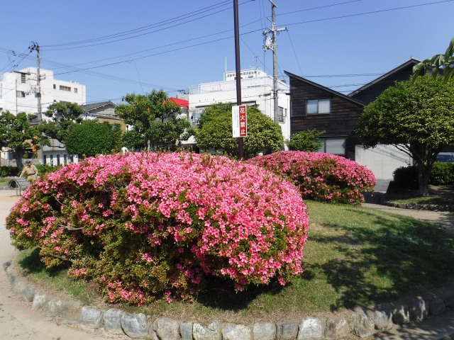 新緑の香りに誘われて、助任緑地、出来島公園、寺島公園等でサツキツツジの花が