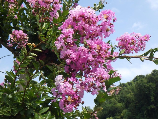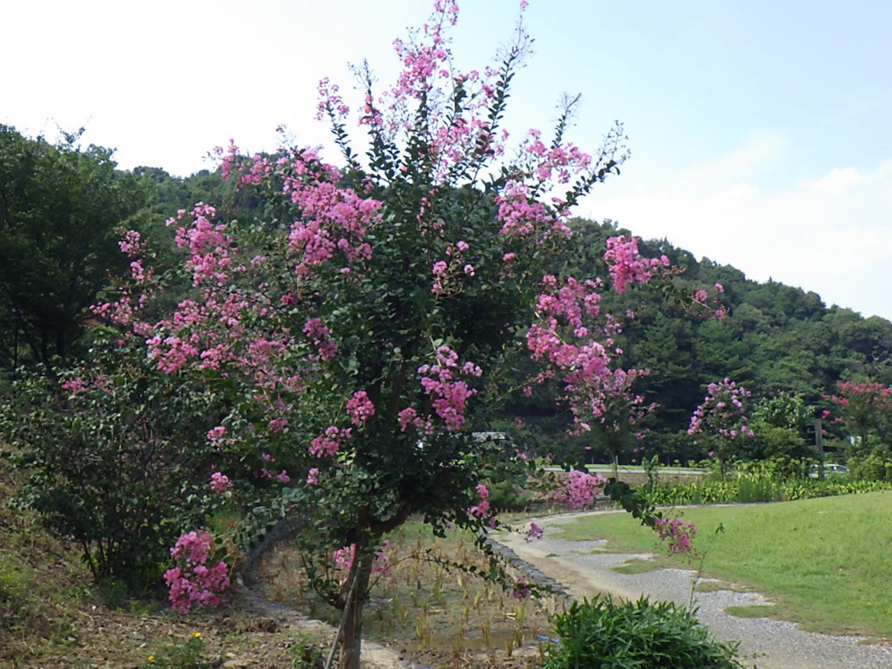 夏の長期間に渡り、阿波史跡公園、東富田公園、佐古駅東緑地等で、鮮やかなピンクの花が見頃を迎えています。
