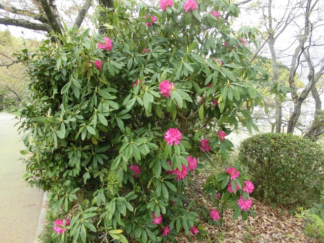 桜の季節もいつしか過ぎましたが、地蔵院池緑地で西洋シャクナゲの花が咲き誇っています。
