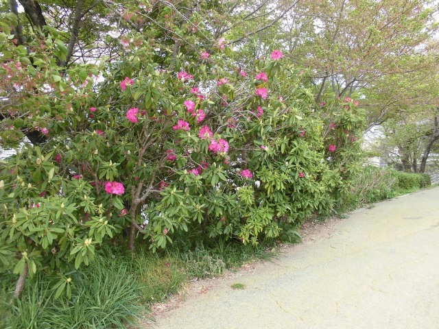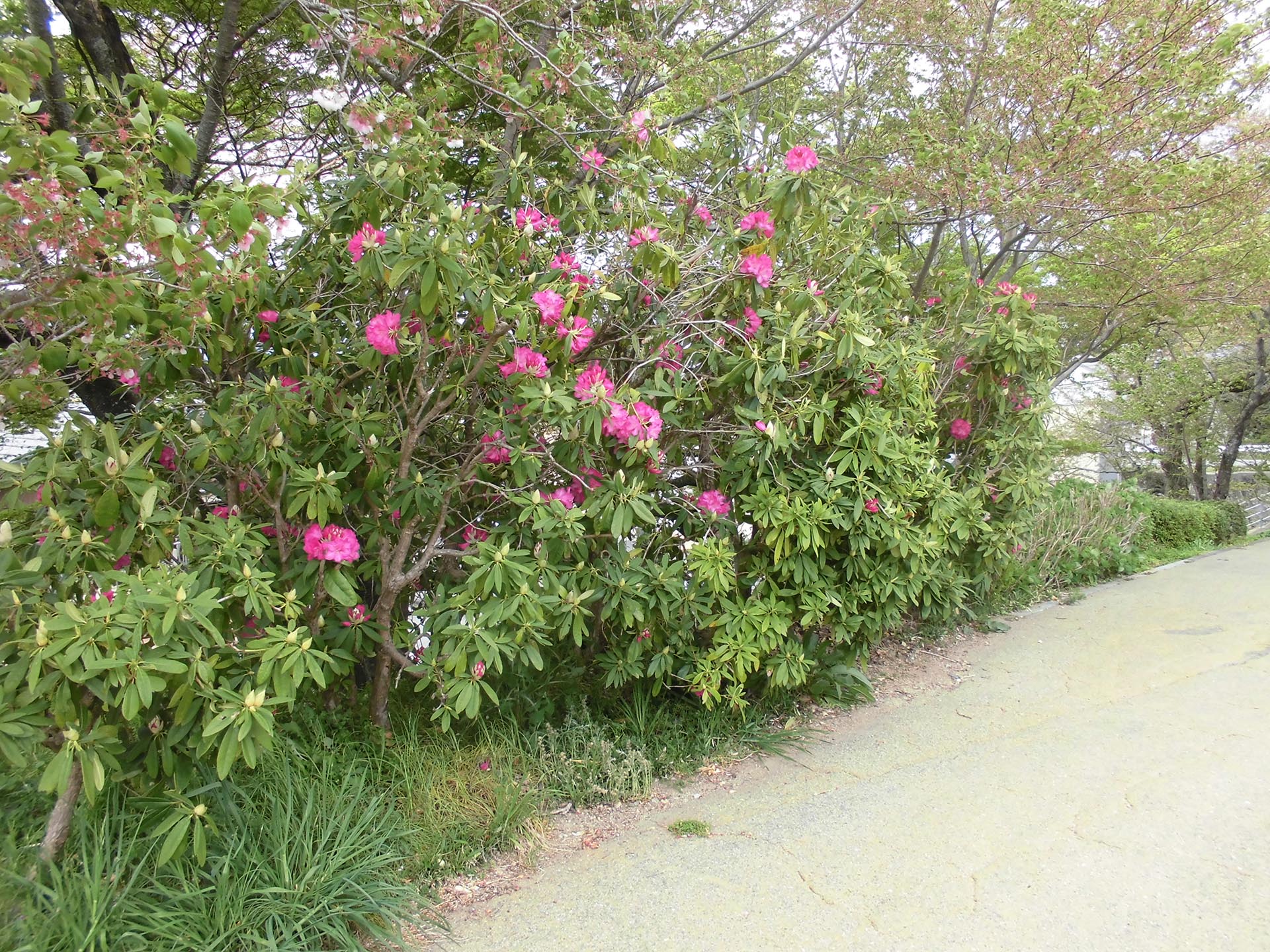 あんなに楽しませてくれた桜もすっかり散ってしまいましたが、桜の枝下を多彩に彩る西洋シャクナゲの花が咲き始めています。西洋シャクナゲの花は、枝の頂点に咲き満開の時期には見事な花を咲かせます。