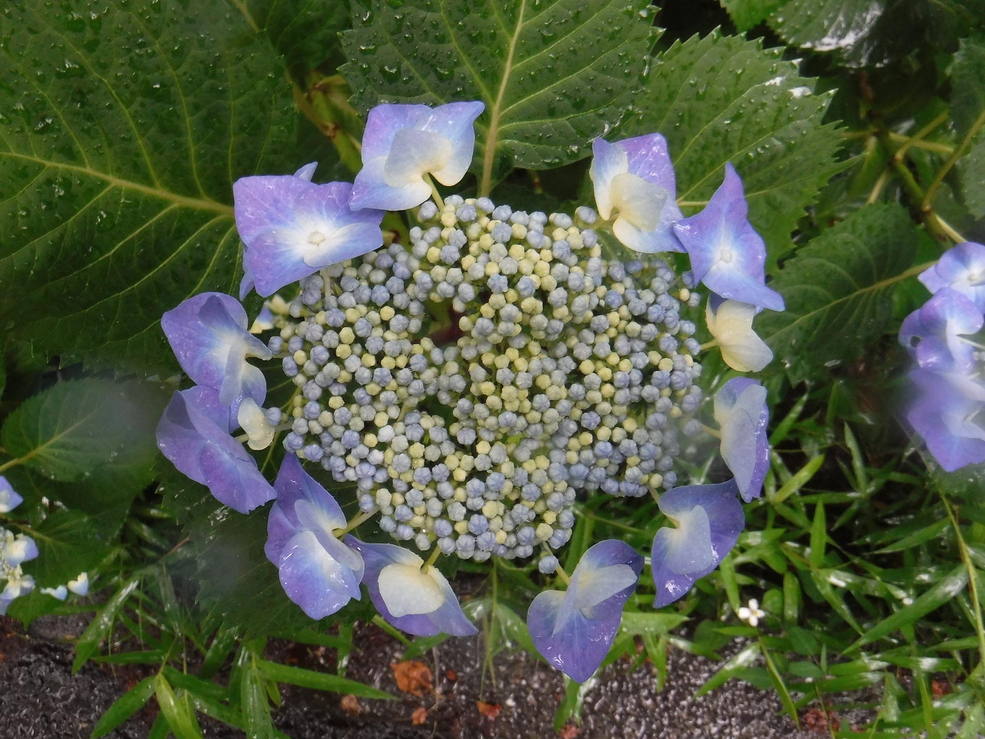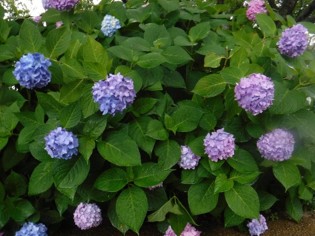 今年もまた梅雨の季節となり5月下旬から6月末にかけて青、紫、ピンク色等のアジサイの花が咲き始めました。咲き始めの頃は白っぽく、次第に色が変わってくることから「七変化」とも呼ばれています。アジサイは土壌の酸性度によって花の色が変わり、一般に酸性ならば青、アルカリ性ならば赤になります。鉢植えのアジサイを上手に育てるには、土の管理と水やりがポイントで、ピンク色のアジサイを育てたいならアルカリ性の強い土を用意し、青色のアジサイを育てたいなら酸性の土を用意しましょう。