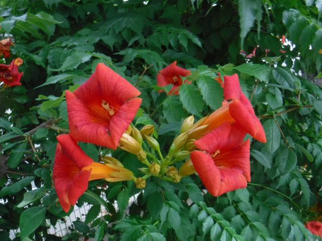 絶え間なく新しい花を咲かせるノウゼンカズラ