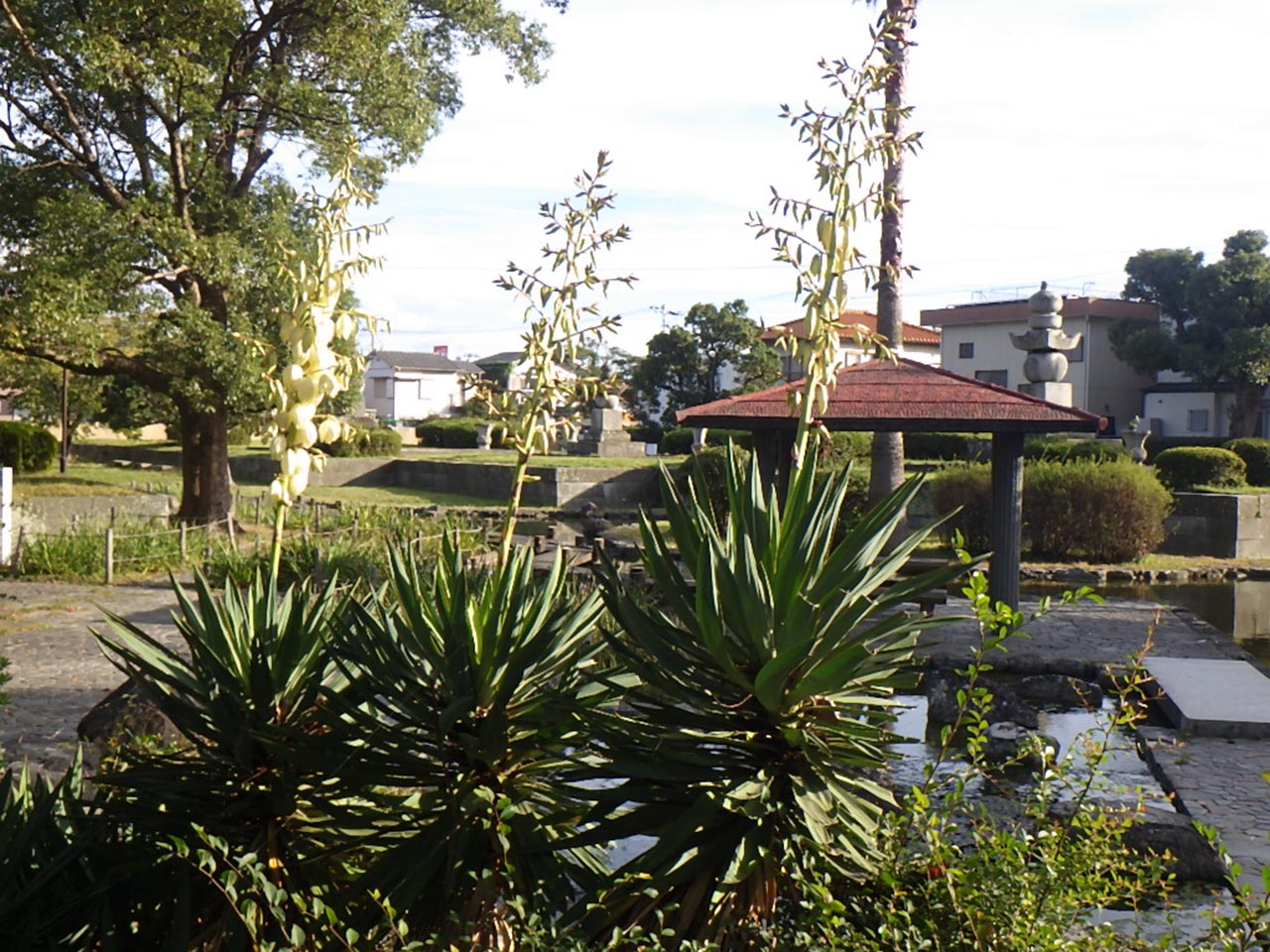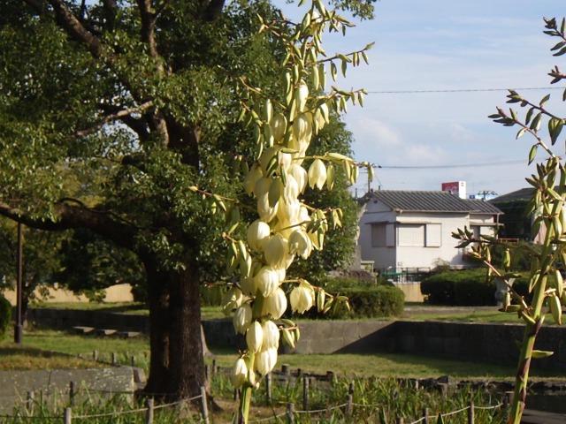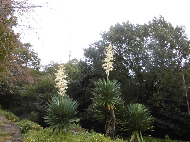 朝夕の寒さに冬の到来を感じずにはいられませんが、眉山公園カスケード花壇の周辺と助任緑地でユッカランの花が咲き誇っています。