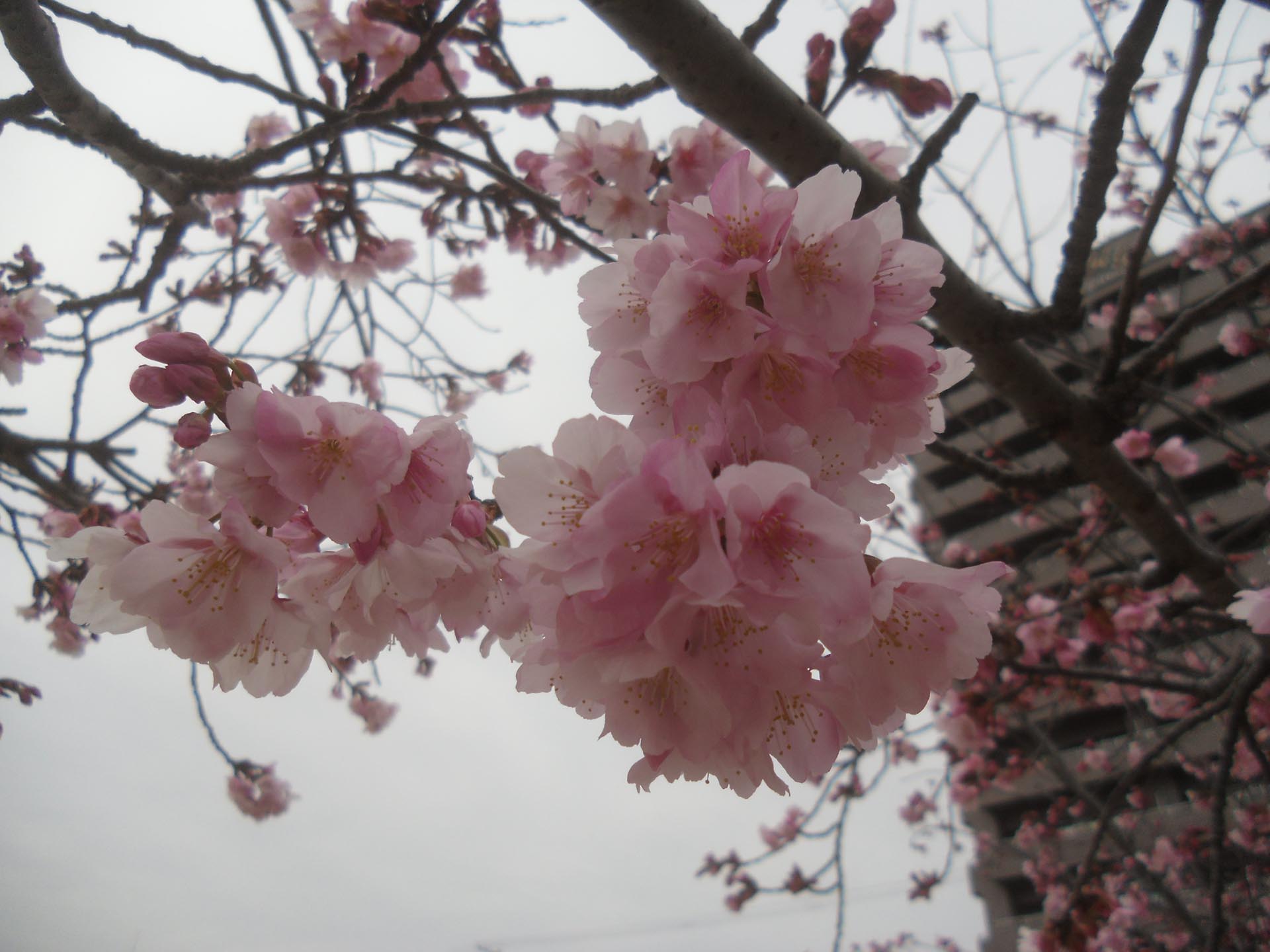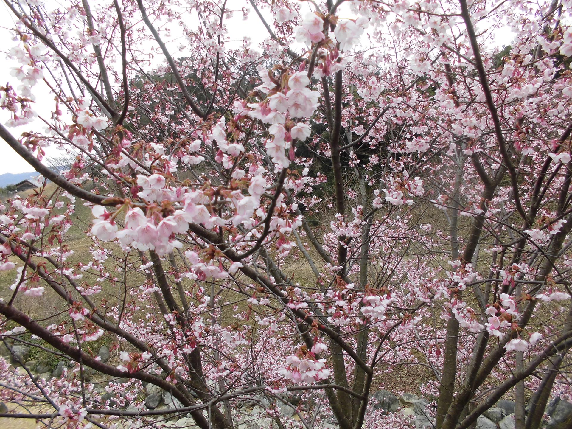 朝夕はまだ冷え込みますが、日差しは春めいてまいりました。ソメイヨシノの開花が待ち遠しい今日この頃、ハチスカザクラの花が咲き始めています。桜の代表とされるソメイヨシノに比べ、開花時期が非常に早いことが特徴で、2月下旬からおよそ1か月ほど淡い紅色の花を咲かせます。色はソメイヨシノより若干濃く、花びらの先に紅のサシが入っているのが特徴です。