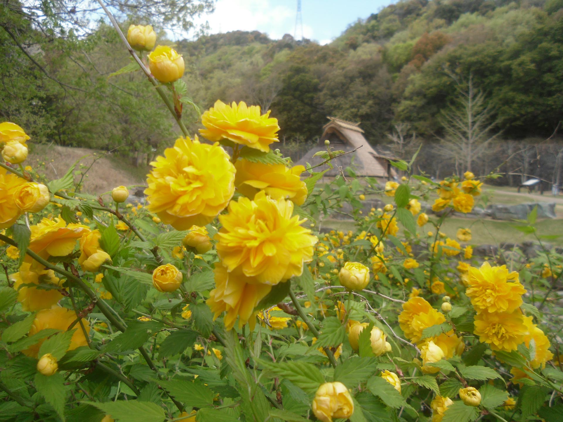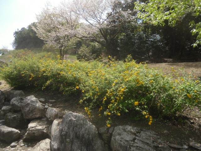 心地よい春の陽気を迎え、阿波史跡公園、応神瑞川公園でヤマブキの花が見頃を迎えています。
