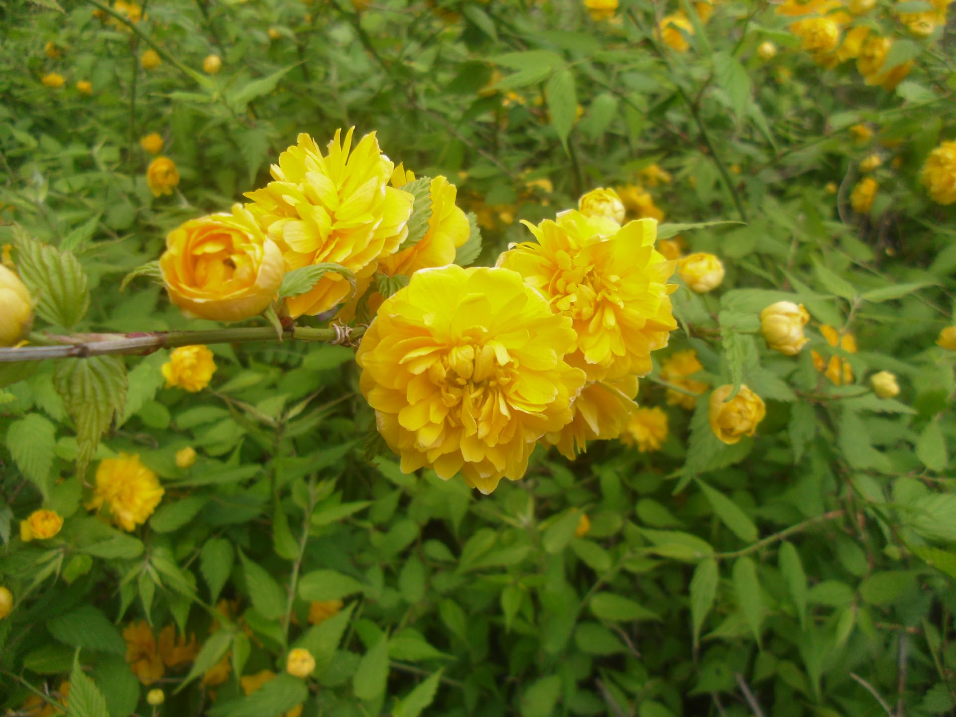 花言葉は、「気品」、「崇高」、「金運」等で、谷底に落とした金貨がヤマブキの花になったという言い伝えや、積み重なるようにたくさんの黄色い花を咲かせる姿から、「金運」という花言葉がつけられました。