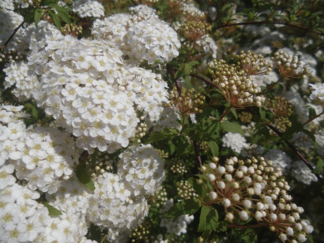 桜の季節もいつしか過ぎ葉桜の季節となりました。細い枝や葉が見えなくなるほど小さな花がひとかたまりとなって手まりのようなコデマリの花が咲いています。コデマリは枝垂れる姿がとても特徴で、庭木や切り花としても利用される春を代表する花木です。
