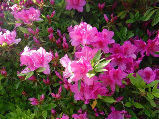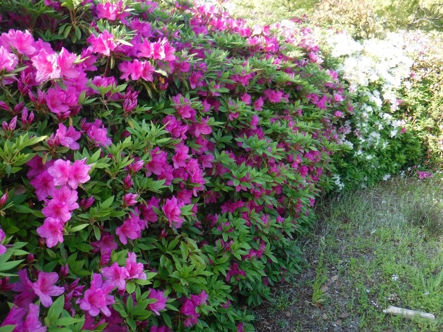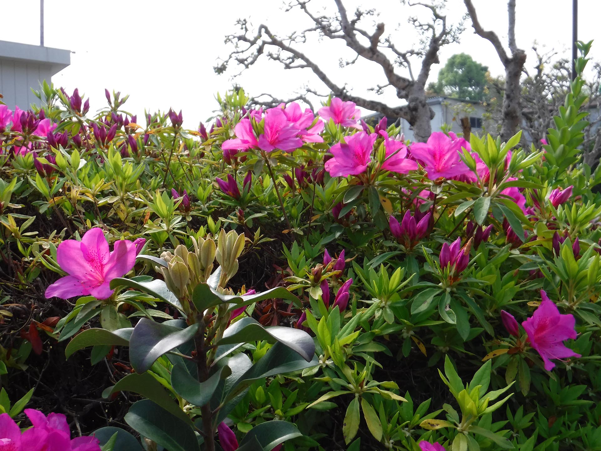 うららかな風に誘われ、助任緑地、一宮公園、出来島公園、西部公園、竜王中央公園等でヒラドツツジの花が咲き始めています。