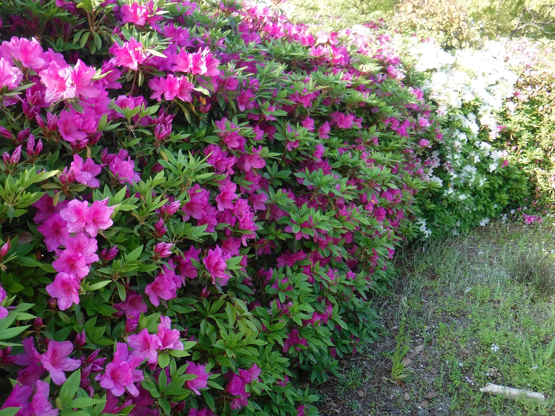 早足に桜の季節もすぎて、つつじが美しく咲く頃となりました。公園や街路でよく見かけるヒラドツツジの花が咲き始めています。ヒラドツツジは、大型で花も大きく古くから長崎県平戸市で栽培されてきたことからヒラドツツジと呼ばれています。ヒラドツツジの花は、大きいものは10cmを超え、花の色は白、桃、赤、赤紫等があり、花が満開のときは素晴らしい景観をつくります。