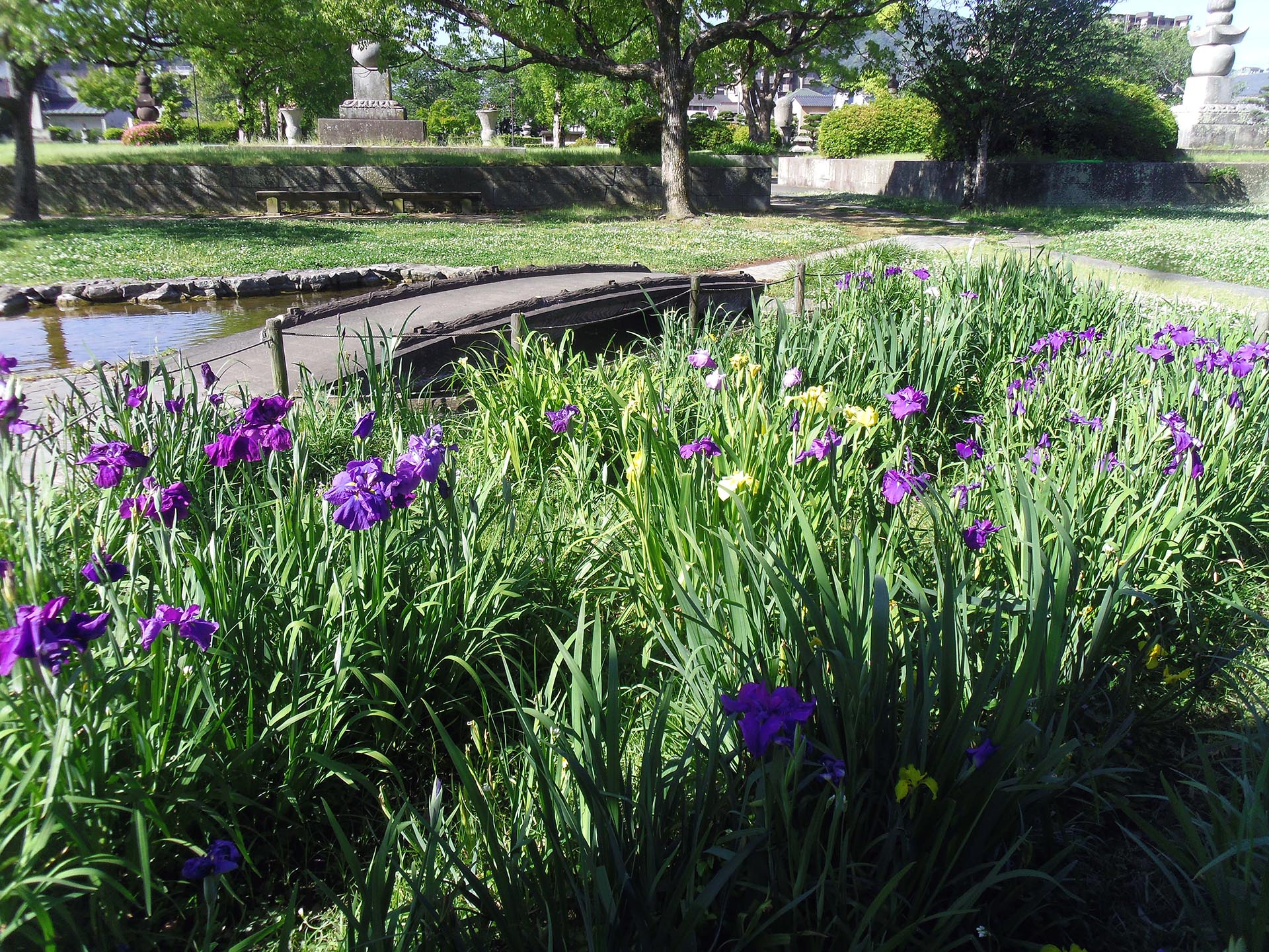 しっとりとした風情が魅力のハナショウブの花1500本が、助任緑地(蜂須賀候墓所)でひときわ華やかに咲き誇っています。助任緑地(蜂須賀候墓所)のハナショウブの管理は、地元の「助任緑地を守る会」の西川会長の暖かいご協力により、ハナショウブが良好な状態に保たれています。