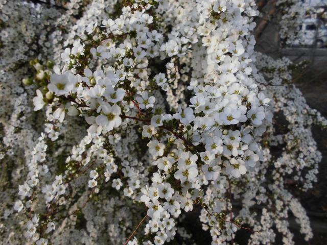 現在、徳島市の助任緑地、北佐古緑地、竜王北2号公園でも雪が積もったように、ユキヤナギの花が咲いています。