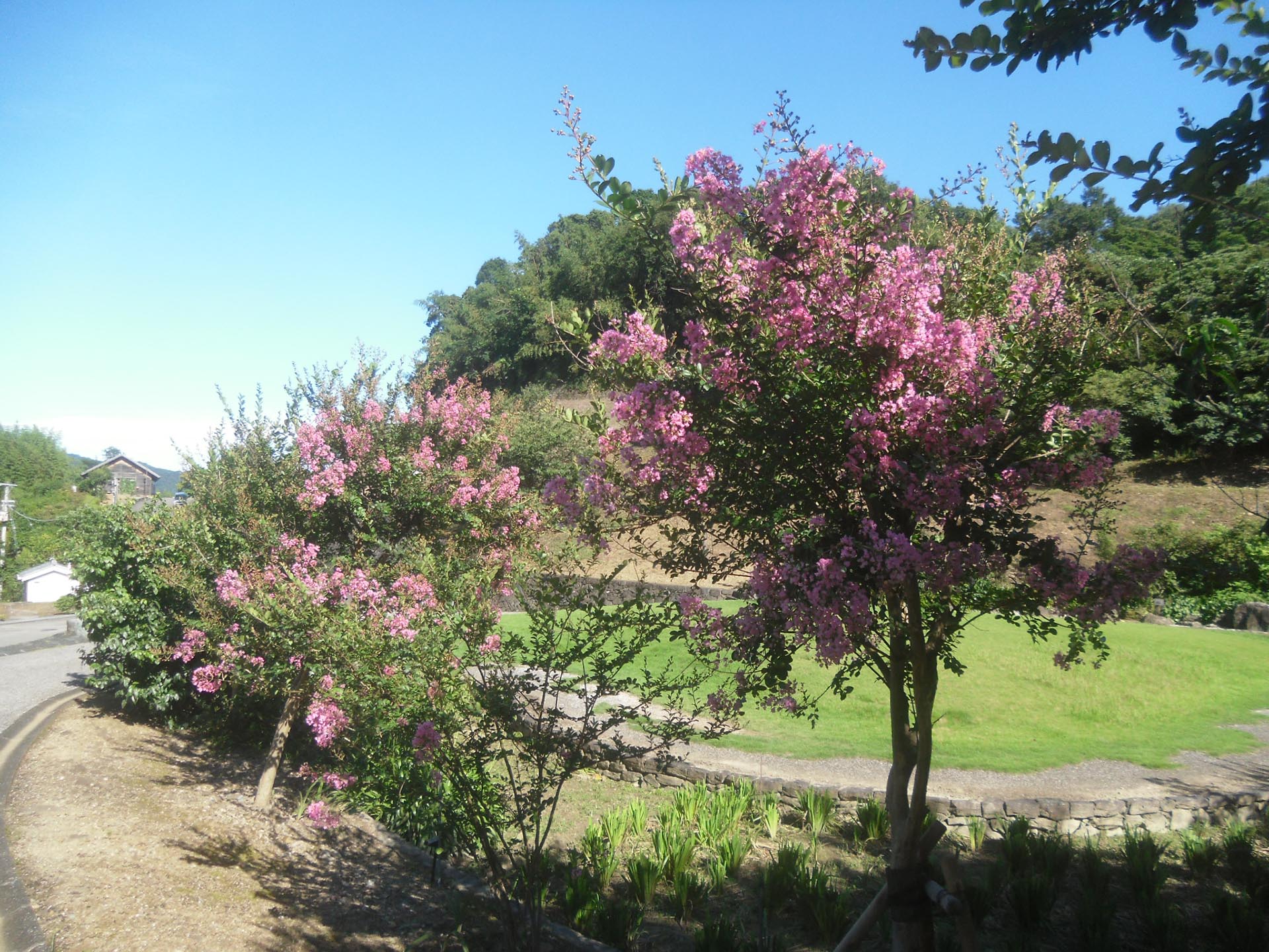本格的な夏が訪れましたが、阿波史跡公園、東富田公園、佐古駅東緑地、竜王中央公園等で、青空の下でサルスベリのピンク色の花が見頃を迎えています。