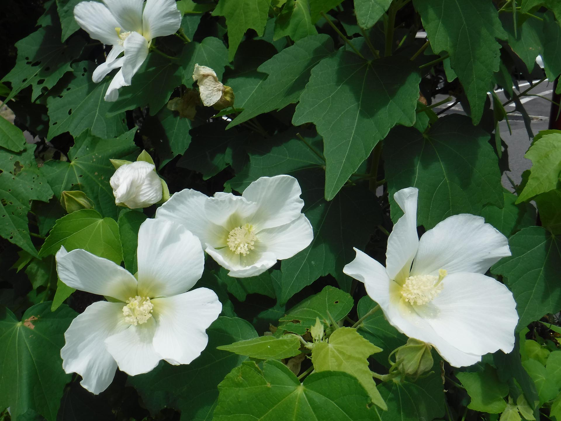 まだしばらくは厳しい暑さが続きますが、寺島東公園、伊月町公園、不動3号公園等で、フヨウの花が見頃を迎えています。