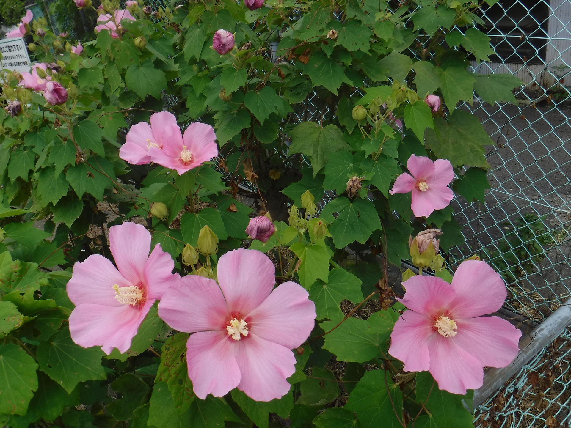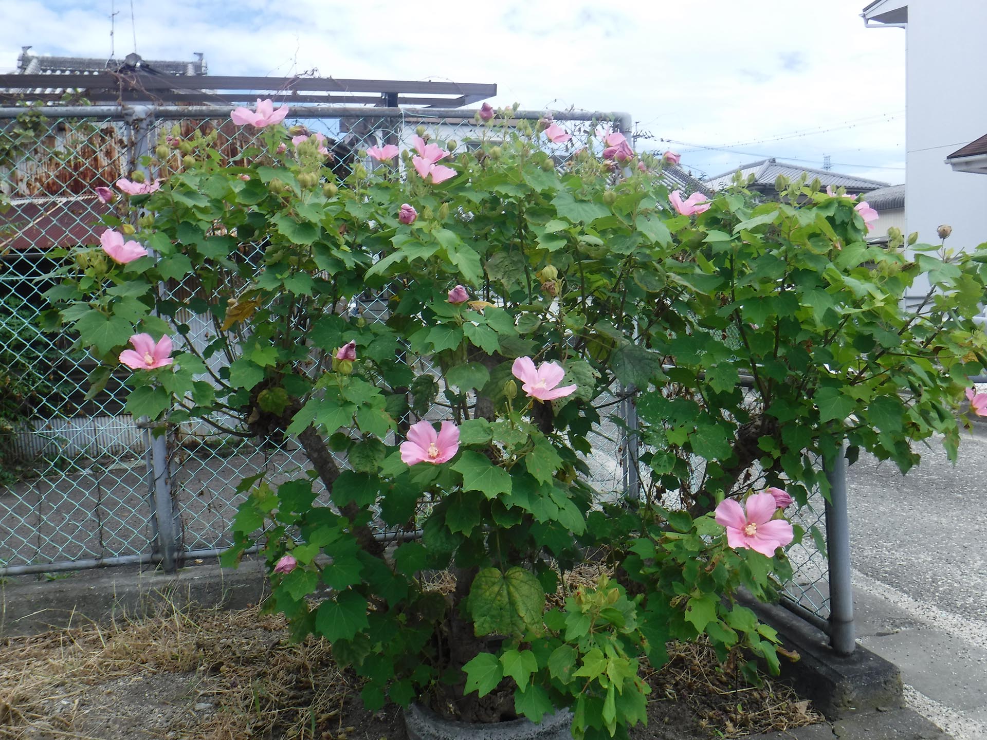 徳島の夏の風物詩である「徳島市の阿波おどり」が開幕し、燃え盛る夏の暑い日差しに負けることなく徳島市でフヨウの花が咲き始めています。フヨウは、夏から秋にかけて朝咲いて夕方にはしぼむ一日花で、夏の期間桃色や白い大きな花を毎日次々と咲かせています。しとやかで優しい印象をあたえるフヨウの花は、昔から「美しい人のたとえ」に用いられている花で、美しくしとやかな顔立ちのことを「フヨウの顔」と言われています。