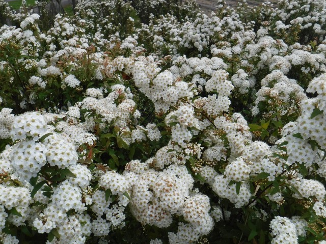 桜の花も落ち着き日中は汗ばむほどの陽気な季節となり、コデマリの花が咲き誇っています。コデマリの花は、春に葉っぱが見えないほどびっしりと小さな白い花を手まりのように咲かせ、枝が垂れる姿はとても美しいです。