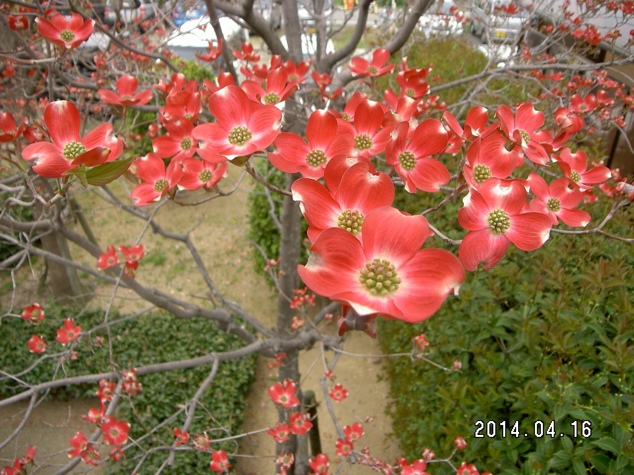 すっかり春らしい温かい季節となりました。桜と入れ替わるように、ハナミズキの花が咲いています。