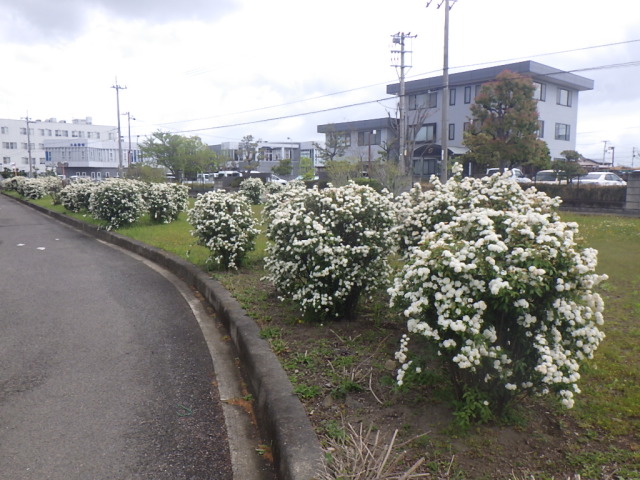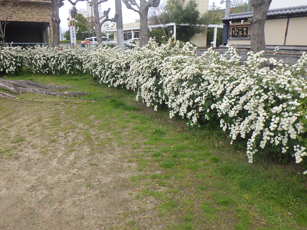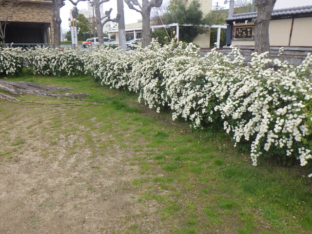 うららかな春の日差しの下、ハイテクランド徳島中央公園、ハイテクランド徳島南公園、北川公園、応神瑞川公園等でコデマリの花が見頃を迎えています。