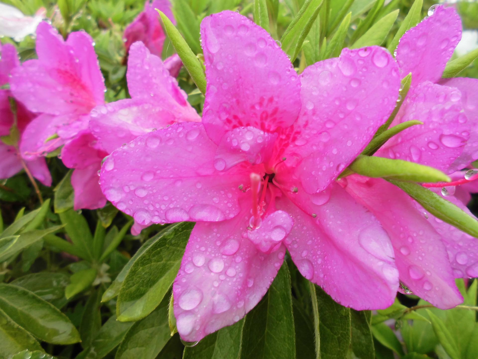 ヒラドツツジの花は4月から5月にかけて白、桃、赤、赤紫色の大きな花を咲かせます。満開のときは、鮮やかな色がとても素晴らしいです。