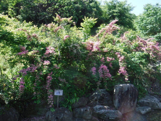 庭のぼたんが大輪の花を咲かせうるわしい季節を迎え、山道を通ると新緑の中で咲くタニウツギがピンク色の花をたくさん咲かせています。タニウツギの花は、ラッパのような形で五枚に裂けた丸い花びらが開き、田植えの時期に花が咲くので「田植え花」としても知られています。梅雨の時期に山道を通ると新緑の中で咲くピンクの花がひときわ映えています。