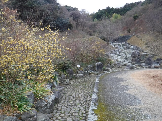 春を待ちわびつつ、阿波史跡公園で14本のロウバイの花が見頃を迎えています。