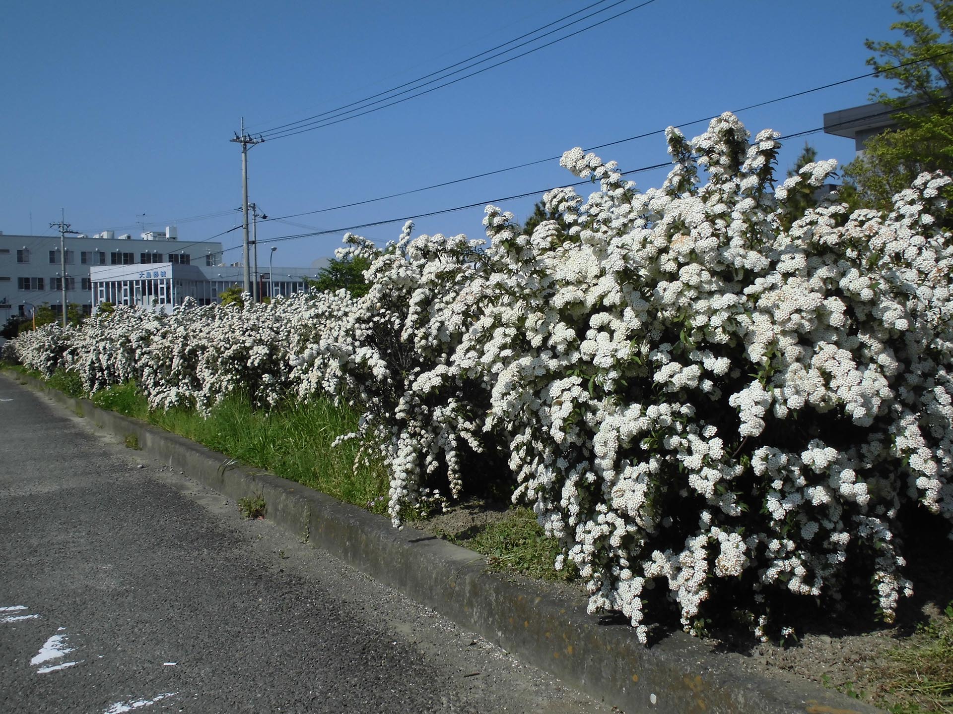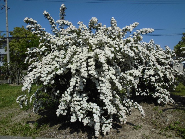 現在、徳島市のハイテクランド徳島中央公園、ハイテクランド徳島南公園などでコデマリの白い花が咲いています。