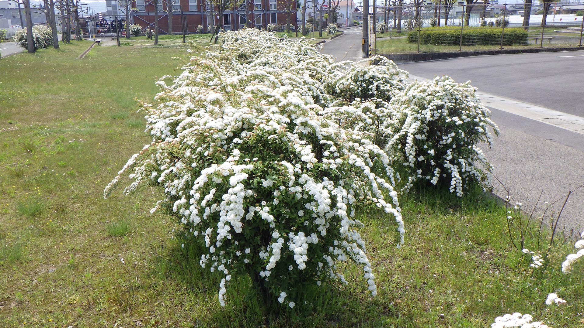 若草の季節となりましたが、ハイテクランド徳島中央公園、ハイテクランド徳島南公園、応神瑞川公園、北川公園などでコデマリが真っ白な花を咲かせています。