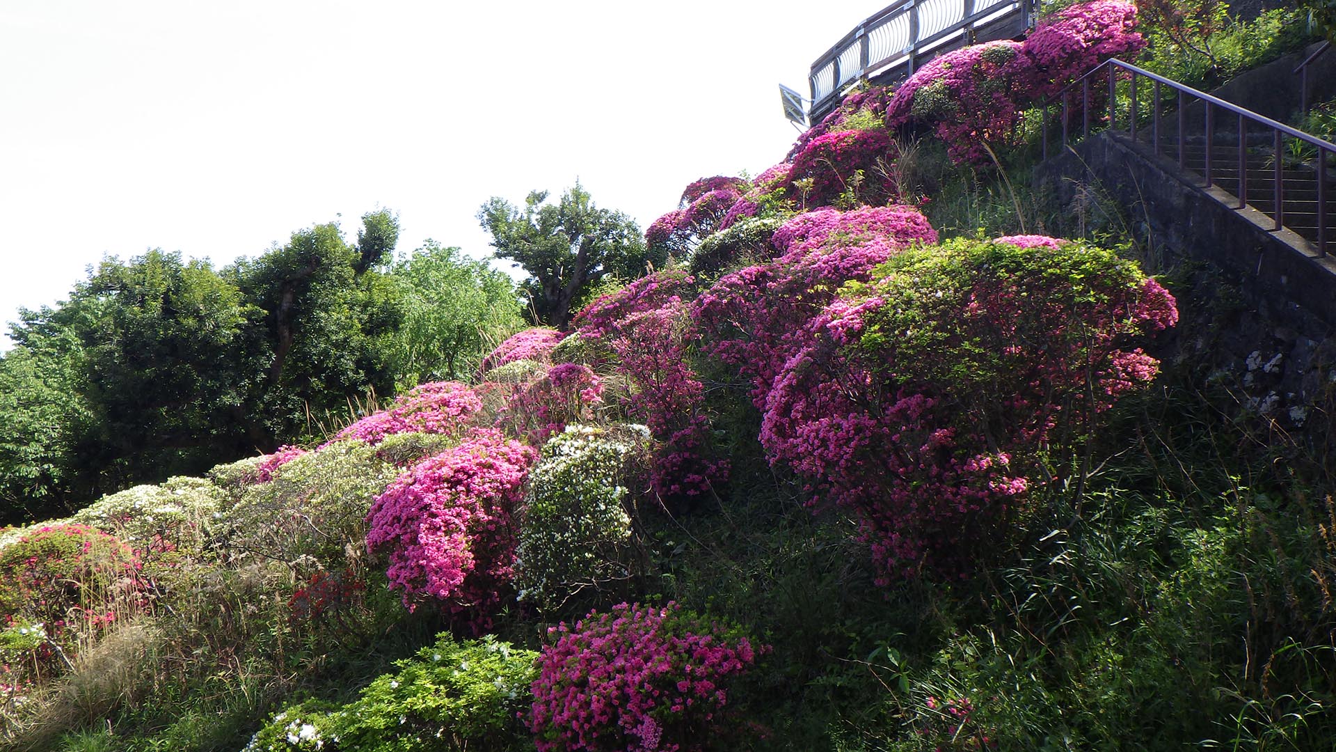 花々が咲き誇る季節となり、眉山公園山頂東法面でクルメツツジの花が見頃を迎えています。