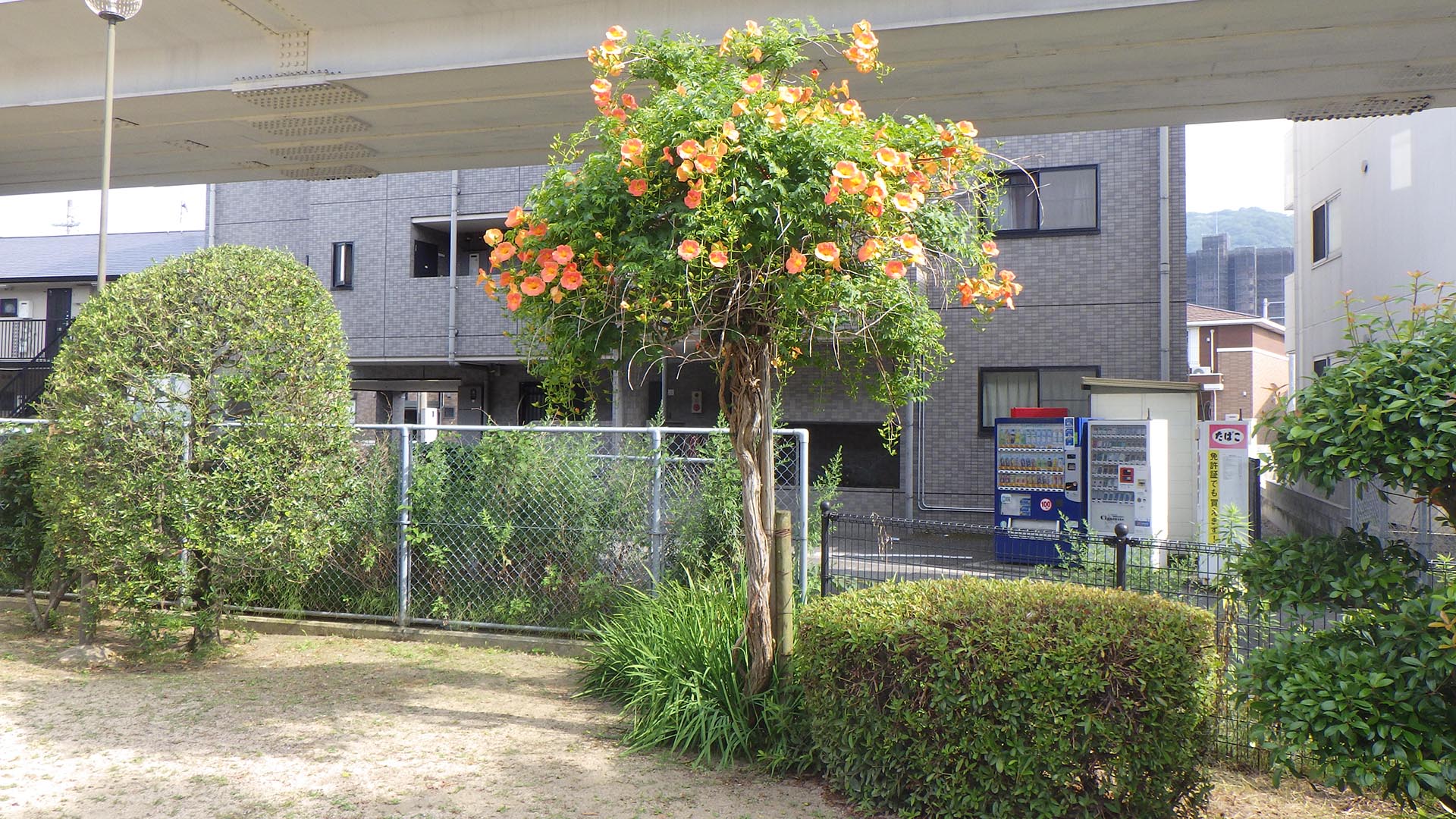 梅雨はまだしばらく続きそうですが、北佐古緑地でノウゼンカズラの花が見頃を迎えています。