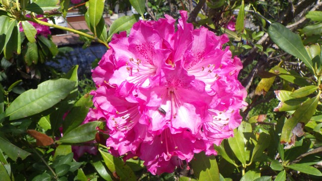 桜の見頃も過ぎ、あっという間に葉桜の季節となりましたが、風通しの良いところでセイヨウシャクナゲの花が咲いています。セイヨウシャクナゲの花は、シャクナゲに比べて花も大きく房状に咲く見事さもあり花色もカラフルなのが特徴です。