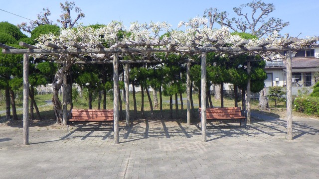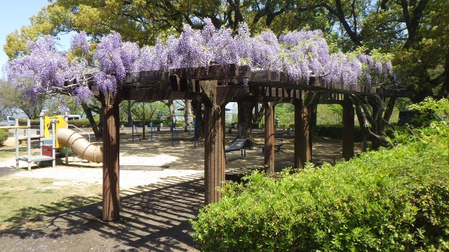 うららかな春の日差しの下、西部公園、しらさぎ台中央公園、上八万公園、丈六南公園、東富田公園、昭和町公園などで、フジの花が見頃を迎えています。