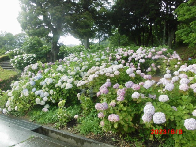 雨に濡れたあじさいの青い花がひときわ美しいこの頃、公園でもあじさいの花が咲いています。あじさいの花は、じめじめした梅雨の時期に華やかで大きな花を咲かせてくれます。あじさいを植えている土壌が酸性の場合は青色の花が、逆にアルカリ性の場合はピンク色の花が咲きます。