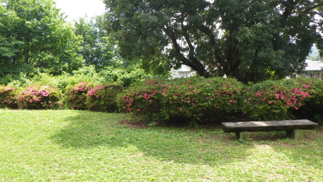 若々しい青葉が眩しい季節となり、サツキツツジの花が咲いています。サツキツツジの花は、肉厚で花びらが小さく一つのつぼみから2〜3つほどの光沢のある花を咲かせます。