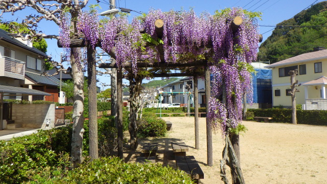 春の日差し暖かい季節となり、不動3号公園、上八万公園、昭和町公園、東富田公園などで、フジの花が見頃を迎えています。