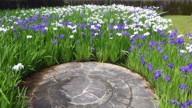 すがすがしい若葉の季節、一宮公園ではカキツバタの花が見頃を迎えています。