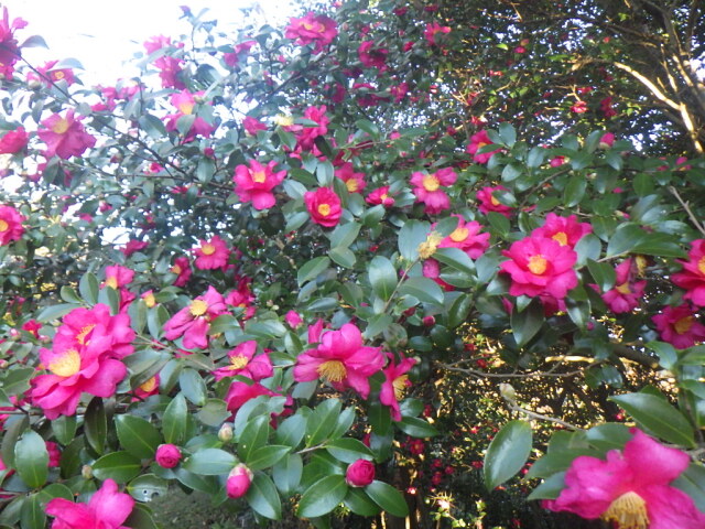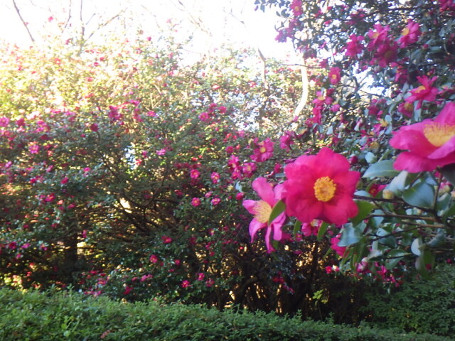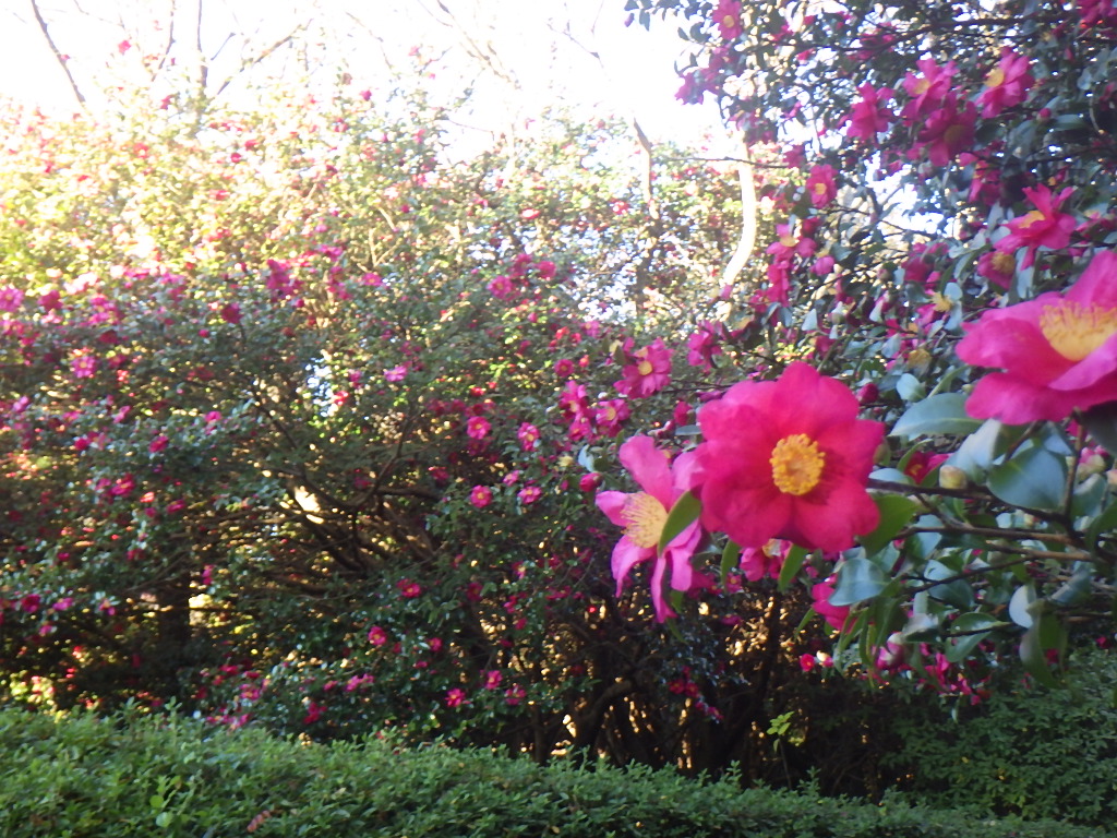 朝夕は冷え込みが厳しくなりましたが、眉山公園、とくしま植物園などでサザンカの花が見頃を迎えています。