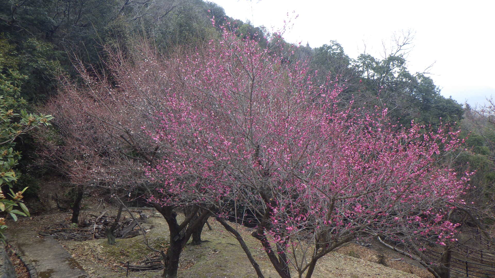 これから寒の戻りもございますが、阿波史跡公園みのりの谷では梅の花が見頃を迎えています。