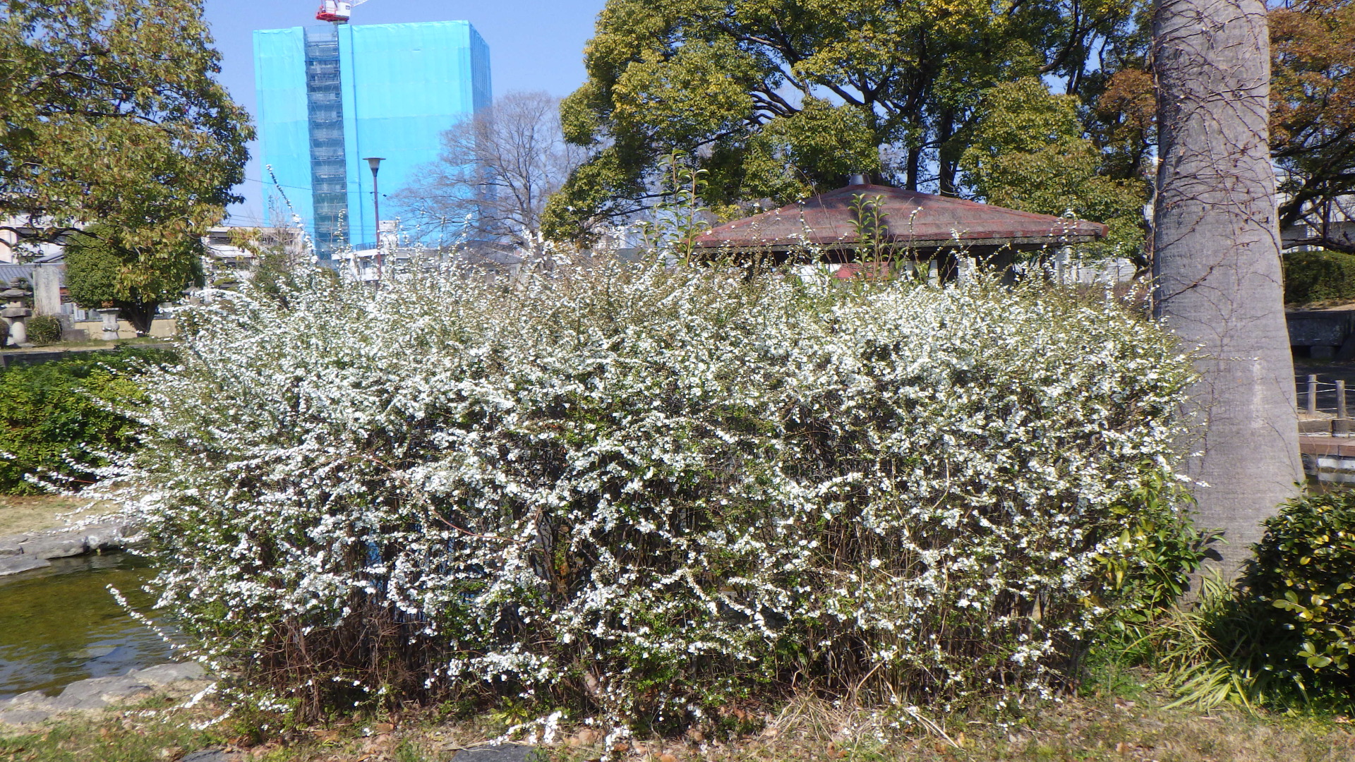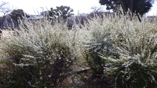 暖かい日差しを感じながら、末広公園、東富田公園、助任緑地などでユキヤナギの花が見頃を迎えています。