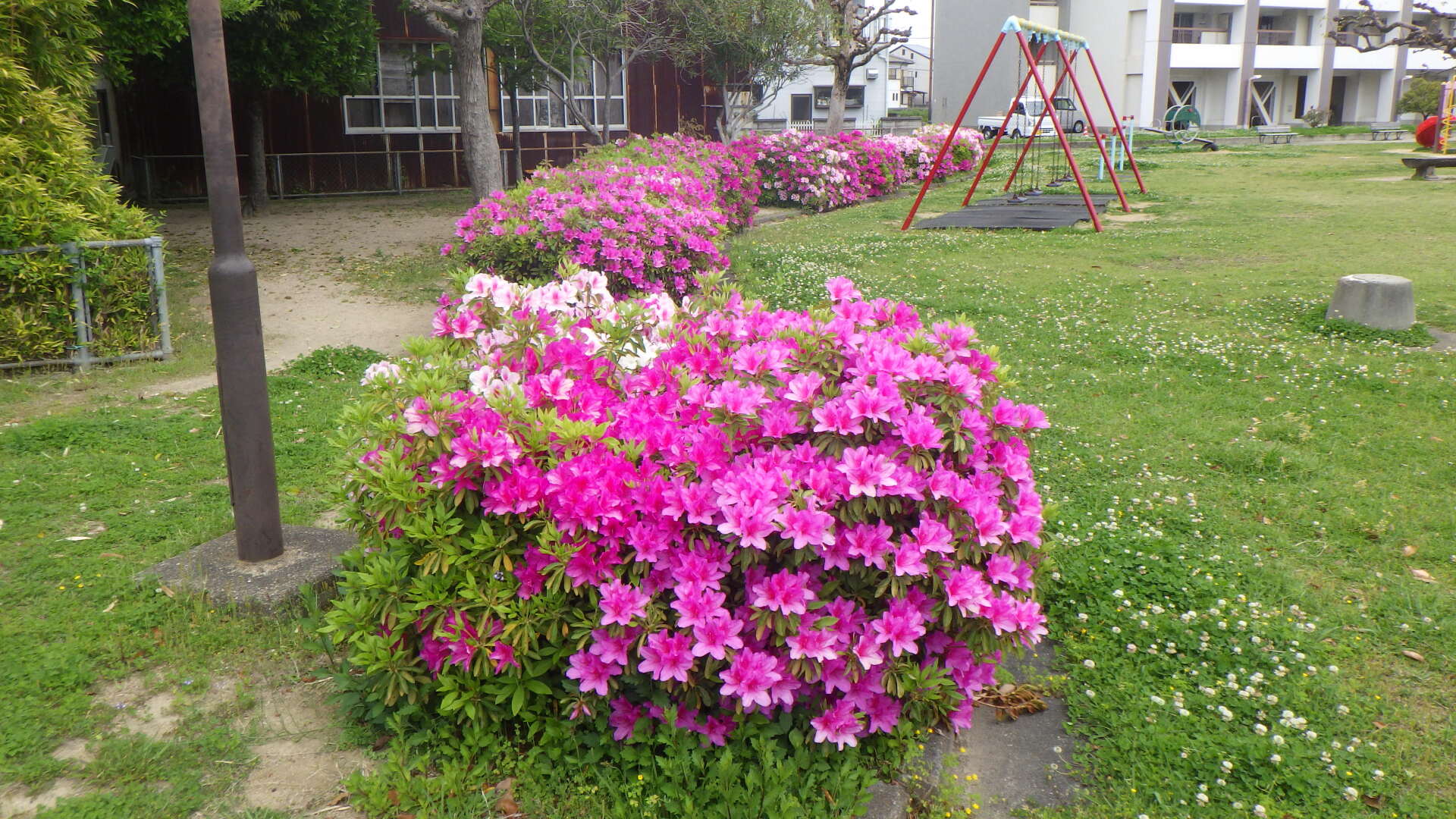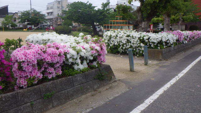 春光あまねく満ちわたる季節、阿波史跡公園、出来島公園、福島・住吉緑地、春日公園などで、ヒラドツツジの花が咲き誇っています。