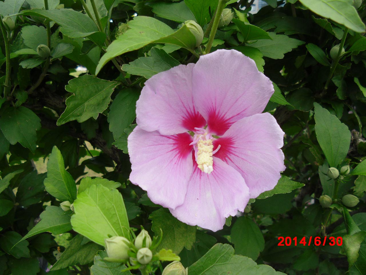 現在、徳島市のハイテクランド徳島中央公園、ハイテクランド徳島南公園、ブレインズパーク徳島公園、新町樋門緑地などでムクゲの花が見頃となっています。