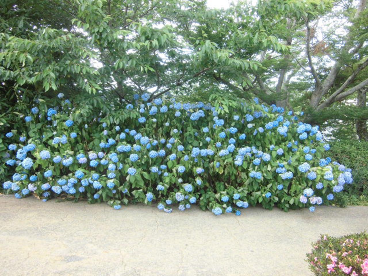 地蔵院池緑地360株と西部公園150株のアジサイが見頃です。アジサイの花は生育土壌が関係していて、同じ土壌でも酸性土壌では青、アルカリ土壌では赤が強くなると言われていますが、同じ土壌でも根からアルミニュウムを吸収することによって微妙に変化するそうです。