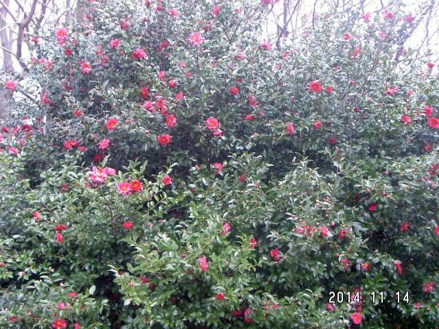 木々の葉も色付き始め、サザンカの咲く季節になりました。サザンカの花は、秋の終わりから冬にかけて寒い時期に、赤、ピンク、白色などの花を咲かせます。サザンカはツバキにもよく似ていますが、違いはサザンカが散る際には花弁1枚ずつ落ちてゆくのに対して、ツバキは花全体が落ちます。江戸時代では、すでによく栽培されていて、日本人には馴染みの深い花のひとつです。