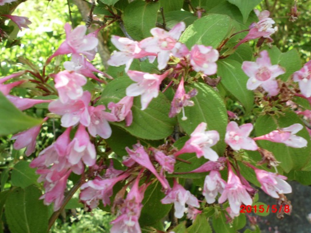 青葉若葉のさわやかな風の吹く季節となりました。新緑の中でタニウツギが、ピンク色の花をたくさん咲かせています。タニウツギの花は5月から6月にかけ、田植えの時期に合わせて花が咲くので「田植え花」としても知られています。