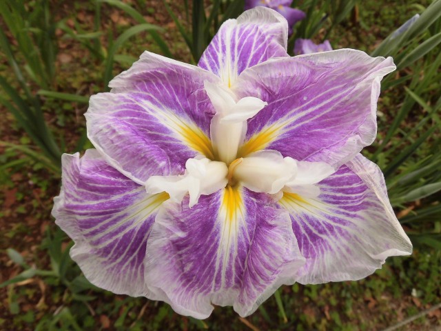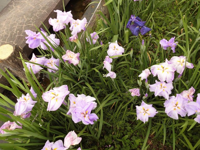 うっすらと汗ばむほどの陽気となり、ハナショウブの花が咲き始めています。ハナショウブの花は、晩春から初夏に細くとがった長い葉の間からまっすぐ伸びた花茎の先に、紫や藤色、白、ピンクなどの大きな華やかな花を咲かせます。